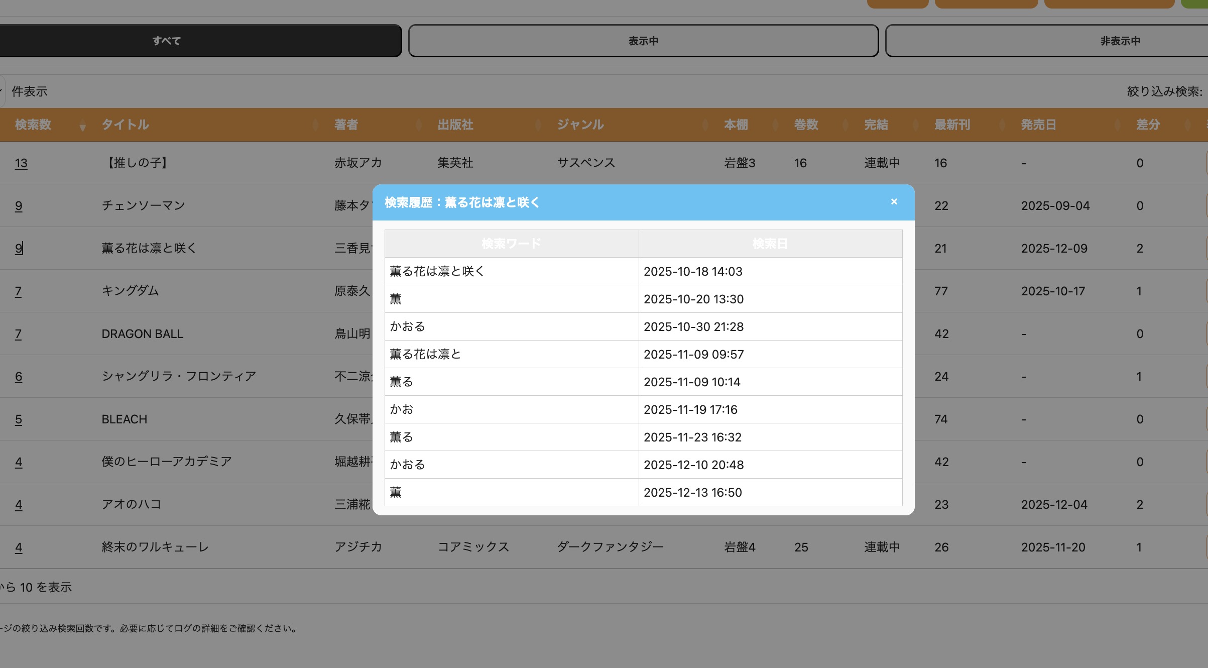 • 「検索数ゼロ」は入れ替えのサイン スパコミックなら、店舗ごとに「どの作品が検索されているか」が数値で分かります。一定期間、一度も検索されていない作品は、その施設のお客様にとって「今は必要ない本」であるという明確な事実です。