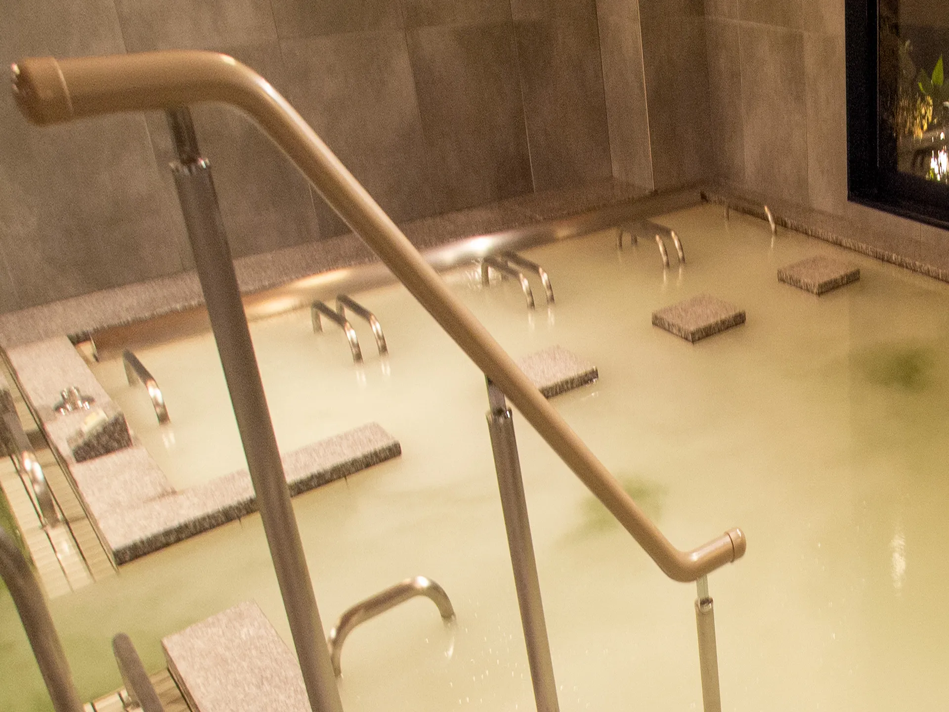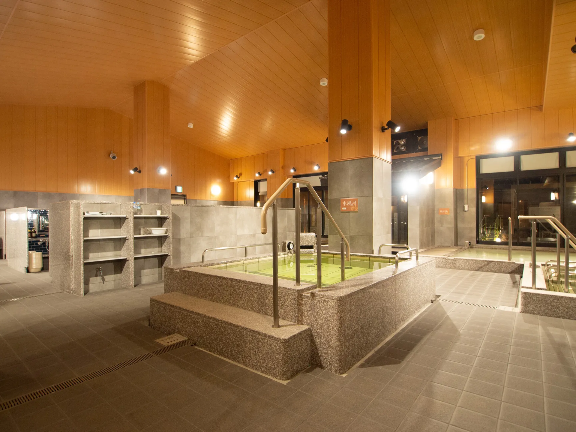 A. 申し訳ございません、おむつ(トレーニングパンツを含む)を着用された方の浴槽のご入浴はお断りしております。お子様につきましては、浴室にご用意しているベビーバスをご利用ください。