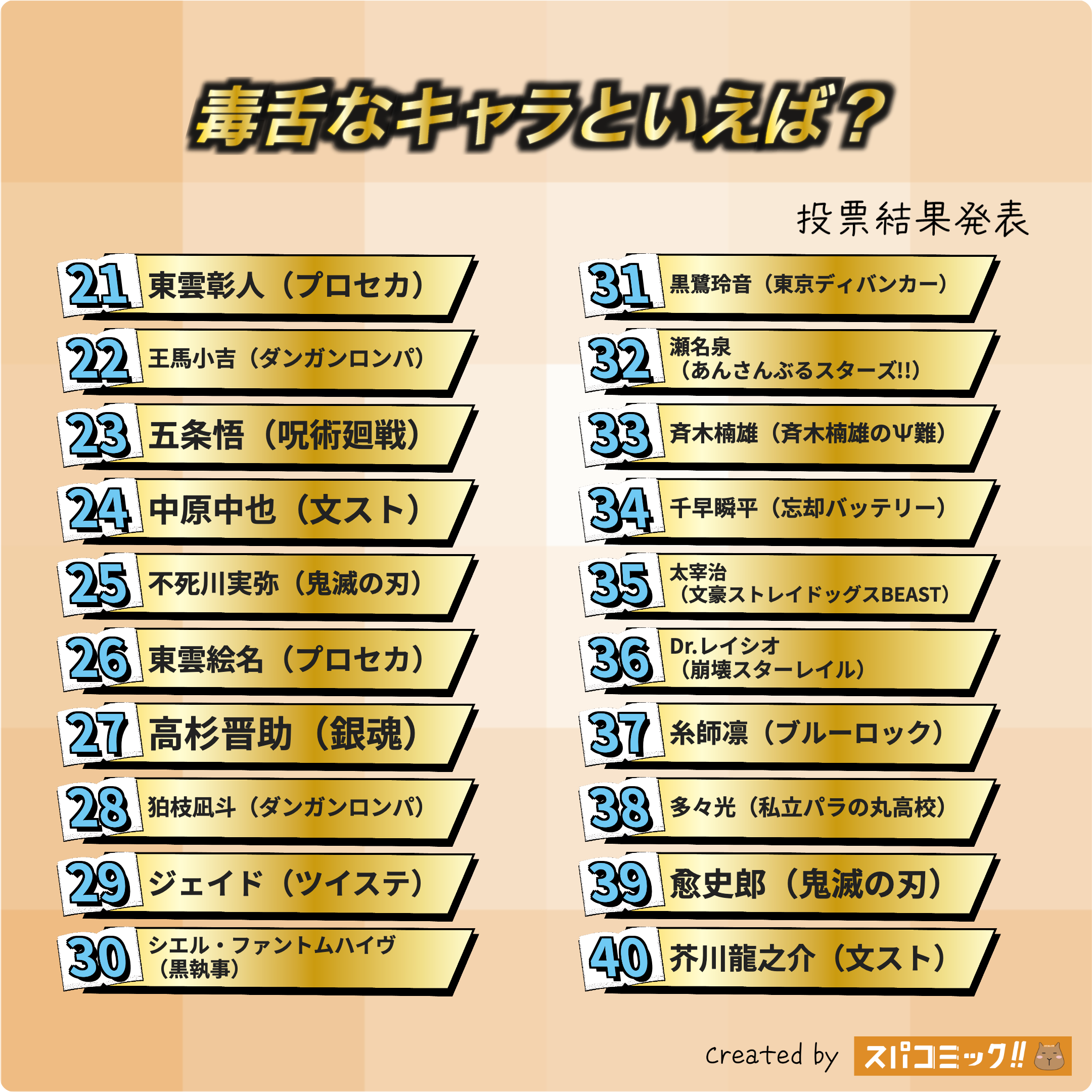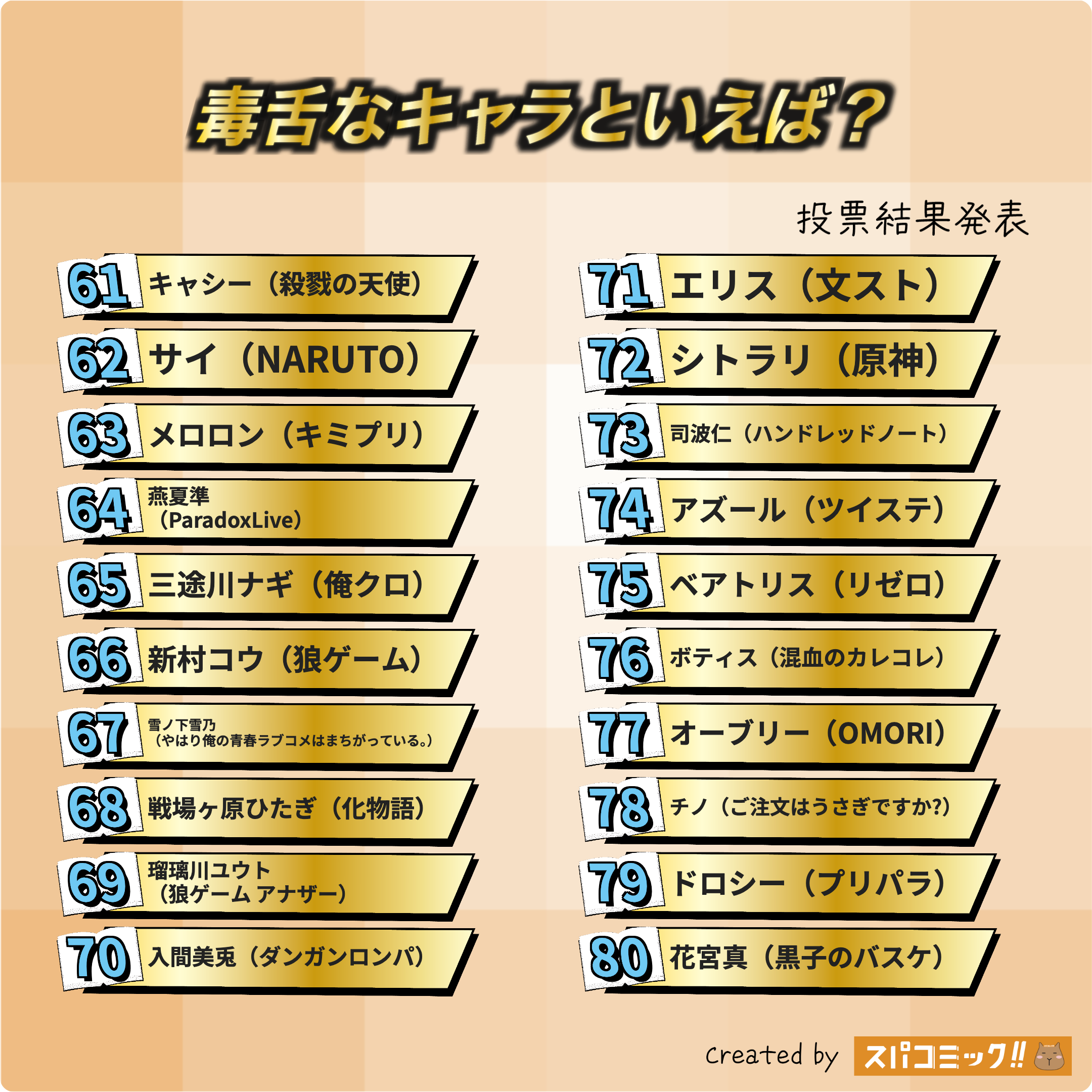 投票いただいたキャラ