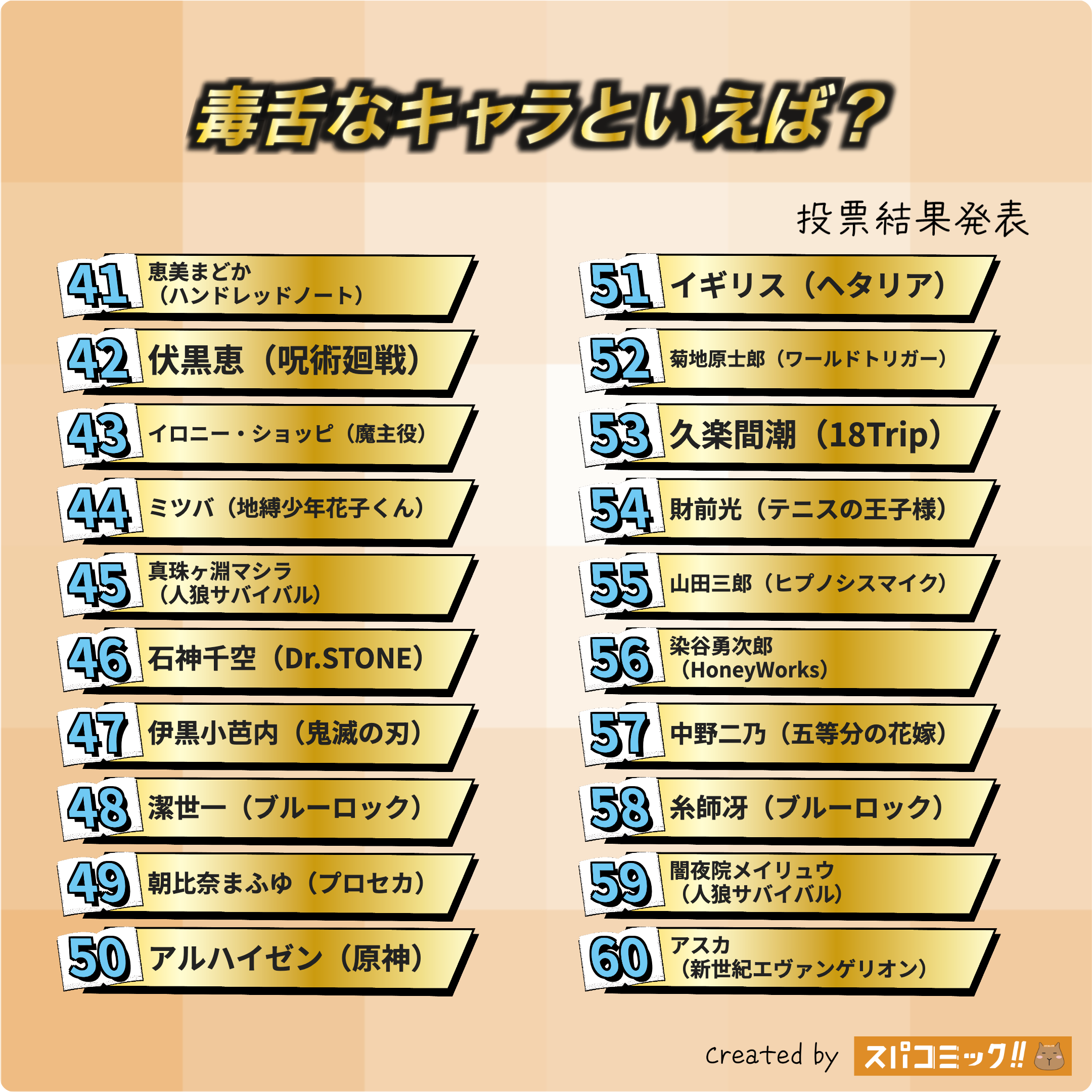 70入間美兎(ダンガンロンパ)4票