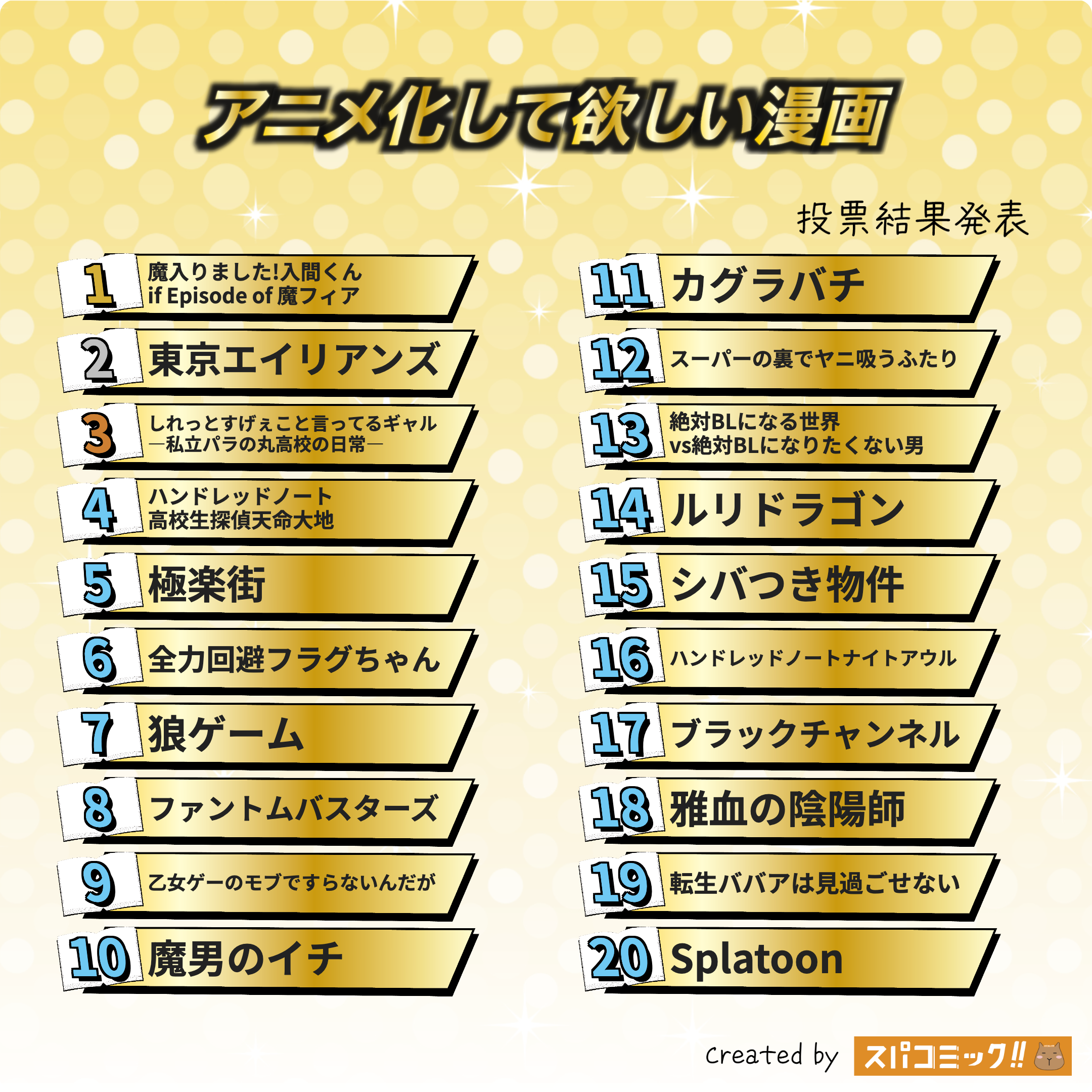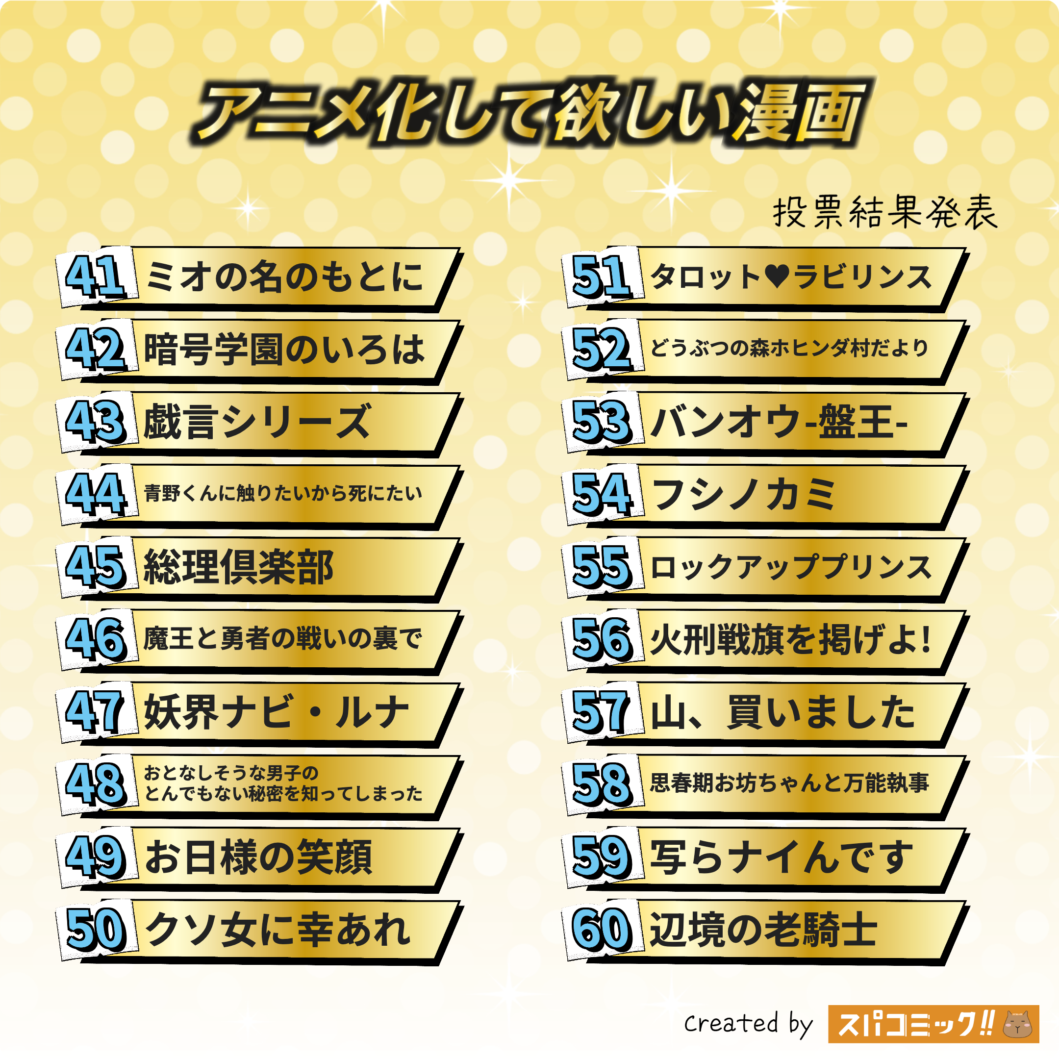 6票- 1躍動感あってアニメ映えすると思います そろそろアニメ化来いっ!