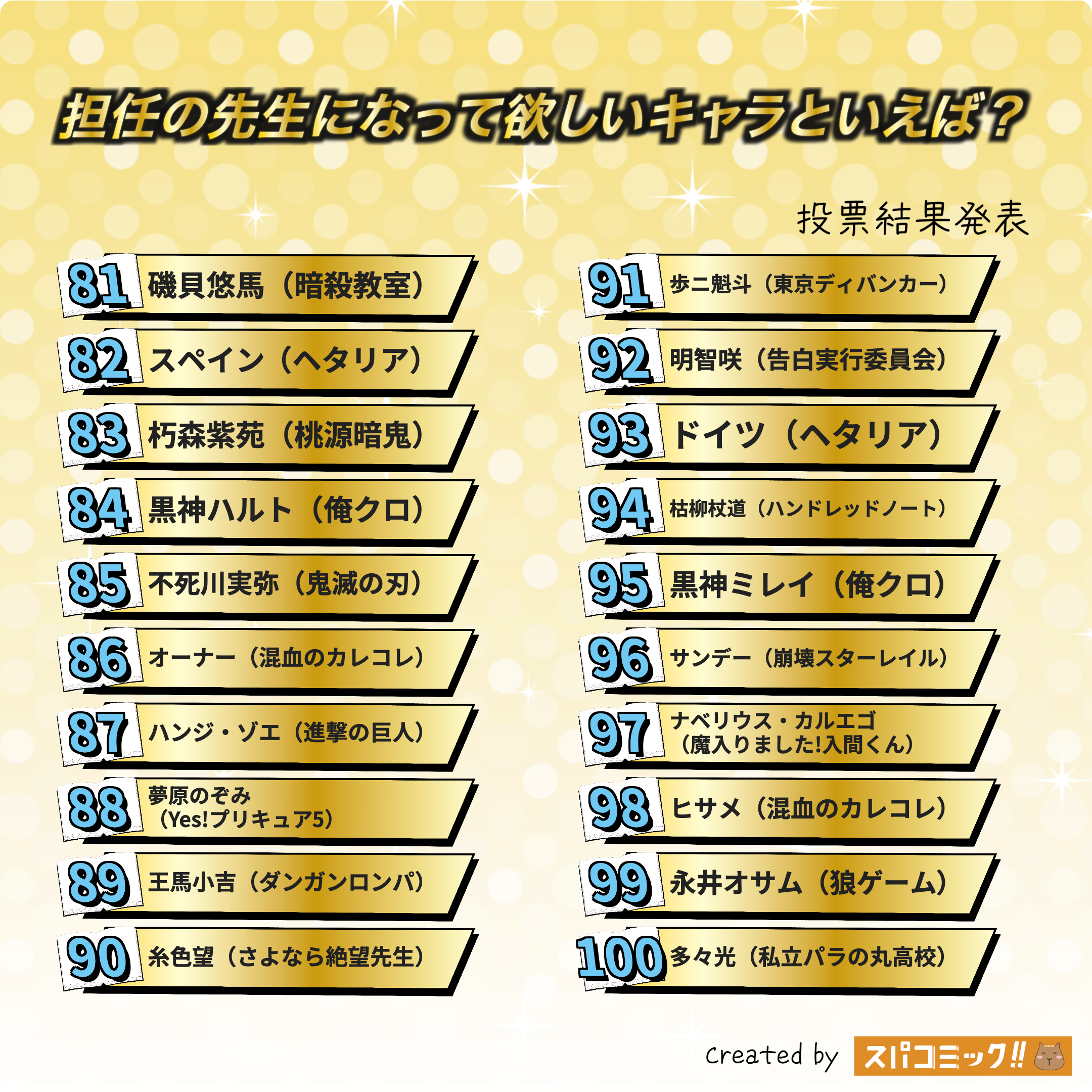 1位 殺せんせー(暗殺教室)