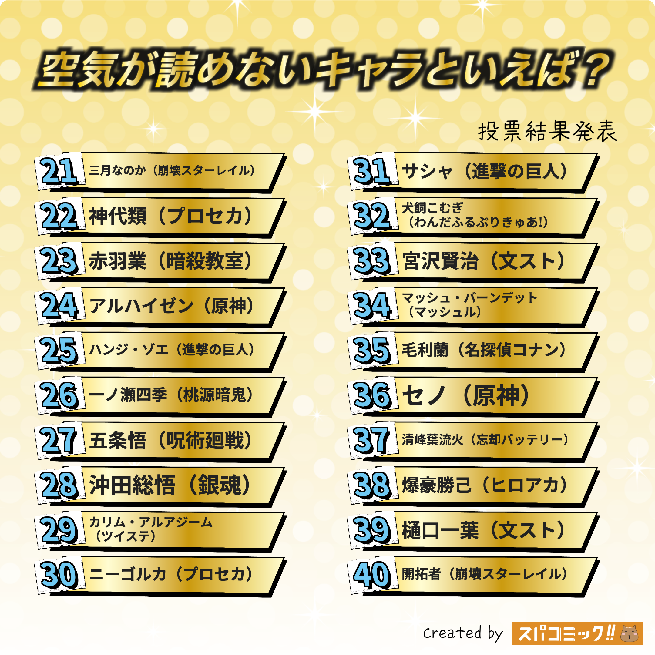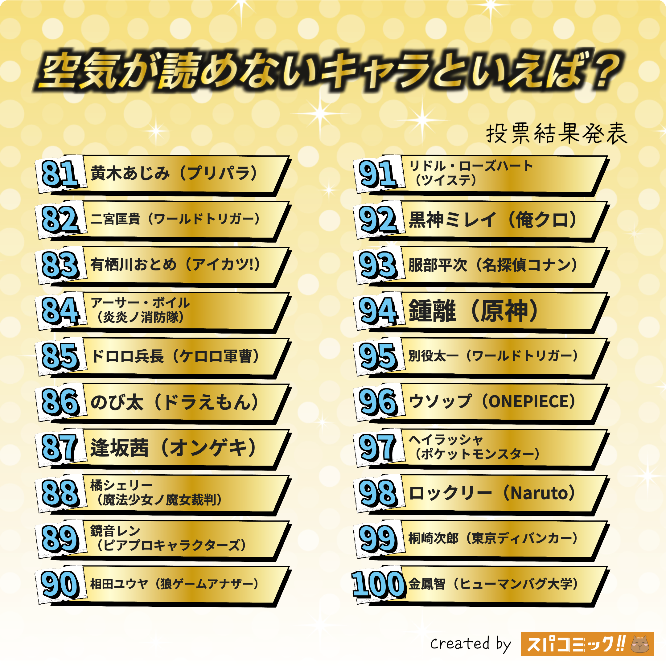 16票- 思ったことをすぐ口に出す素直さとマイペースさで、場の雰囲気を気にせず行動するため