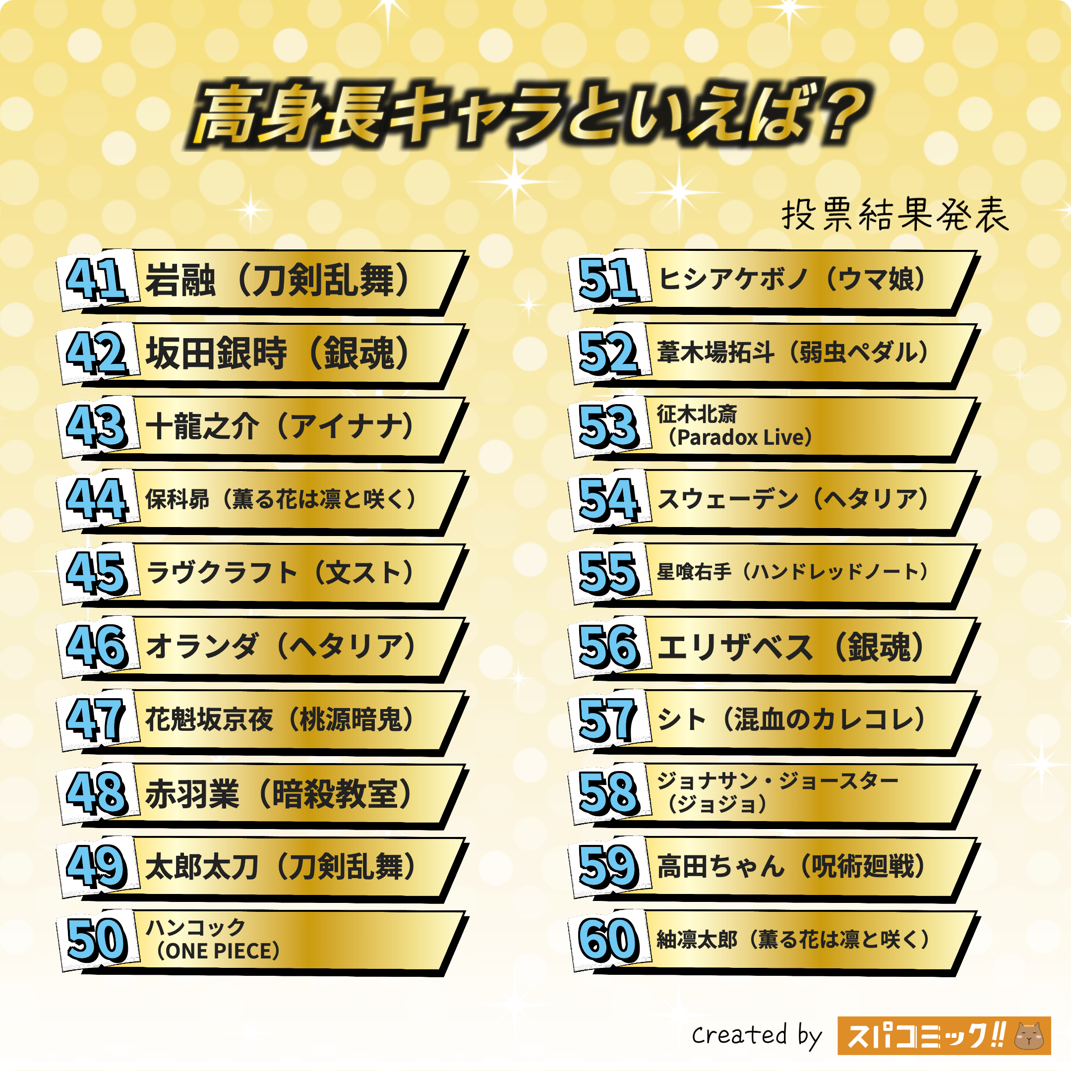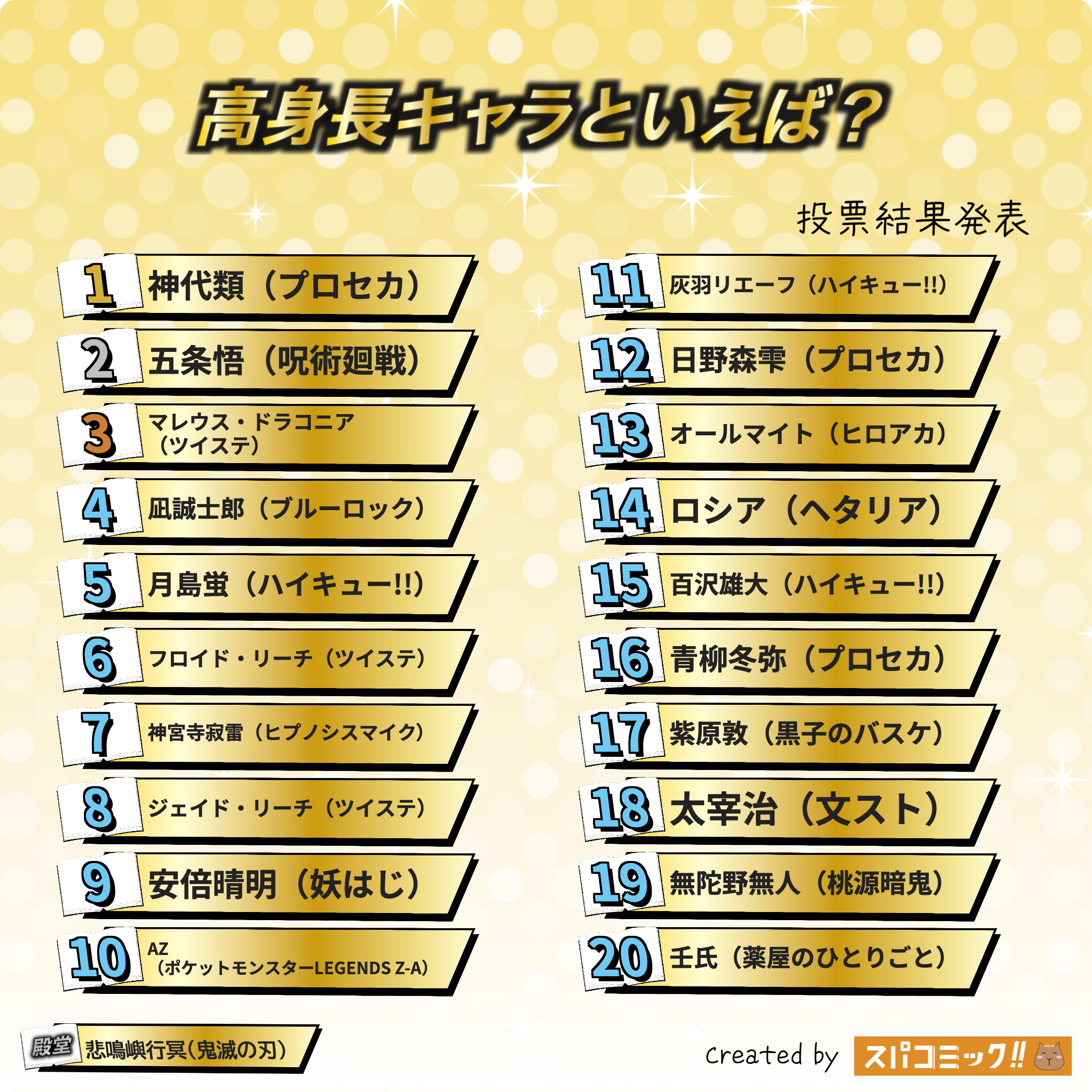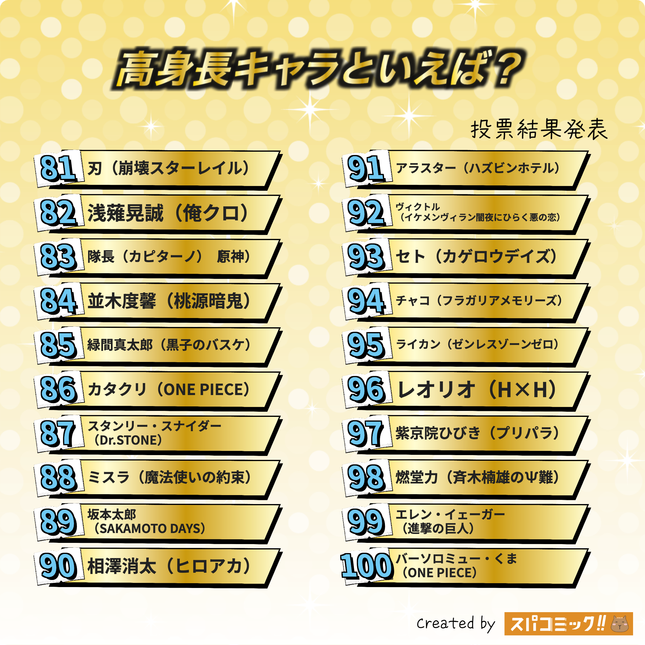 発表数: Best100+殿堂入り1キャラ