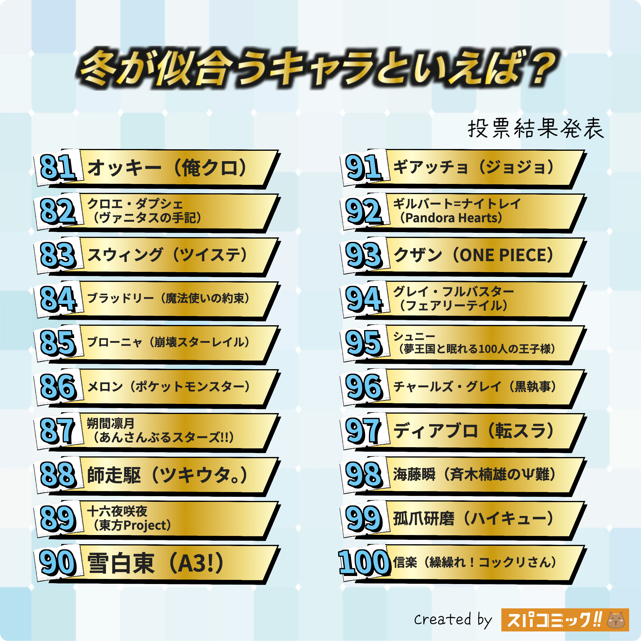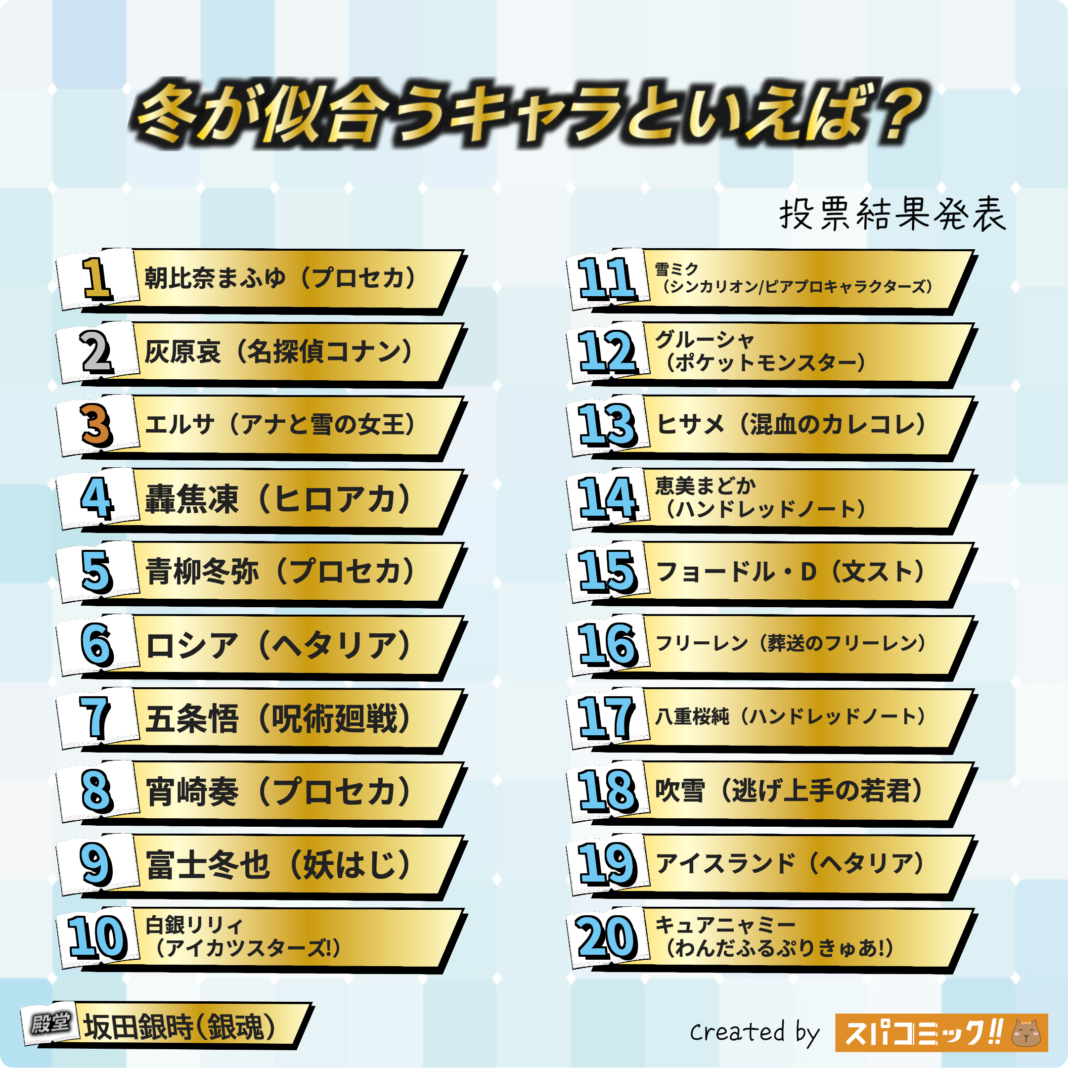 発表数: Best100+殿堂入り1キャラ
