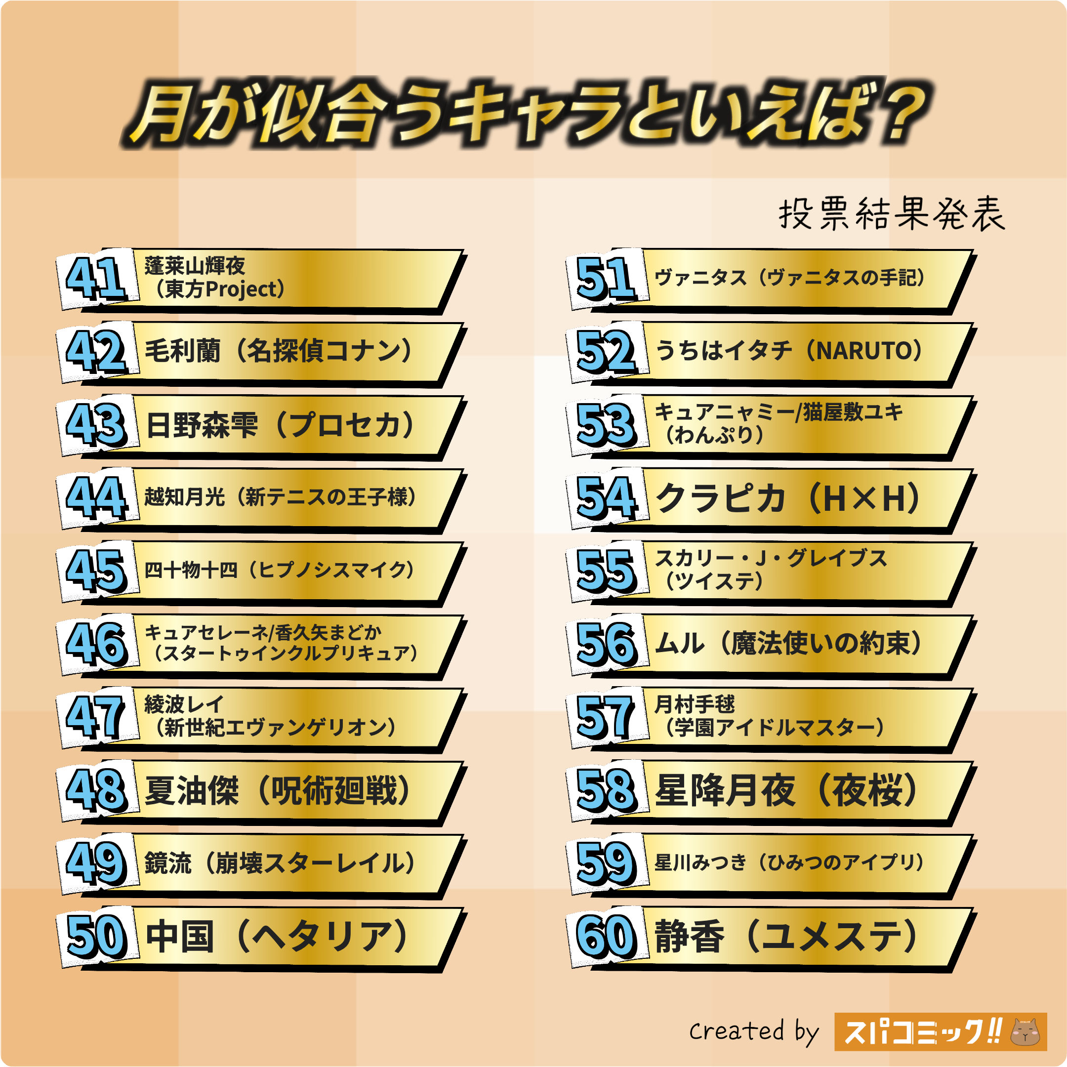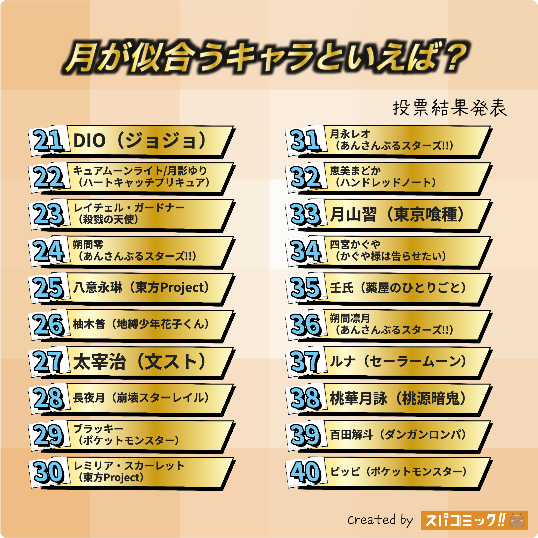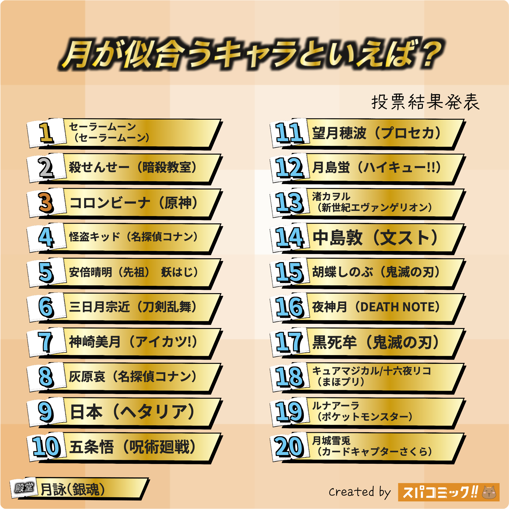 22票- キッドの後ろに月がアップされたとき、めっちゃ似合ってたから