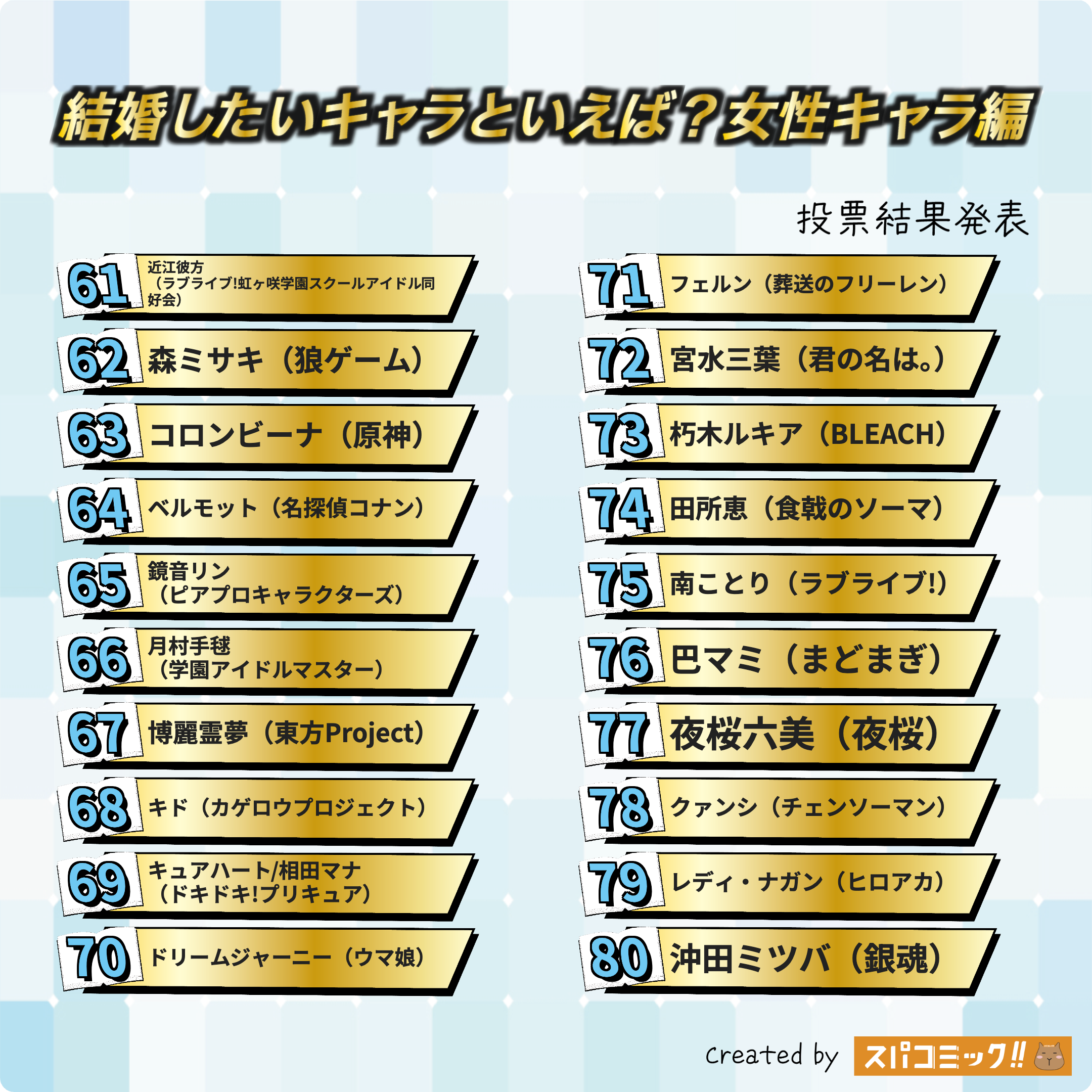 数奇川零(Infinit0) フォルカー(夢王国と眠れる100人の王子様) 草鹿やちる(BLEACH)