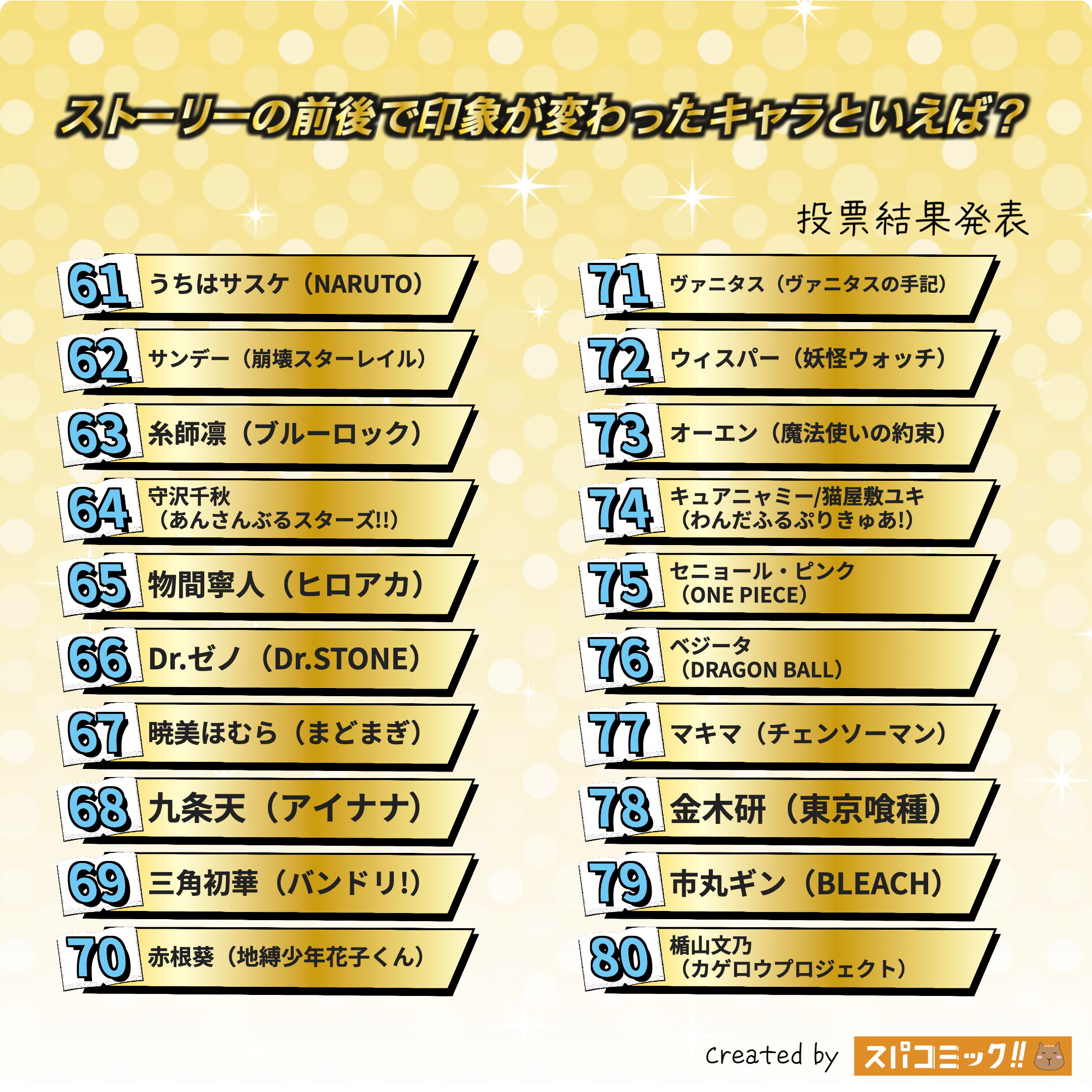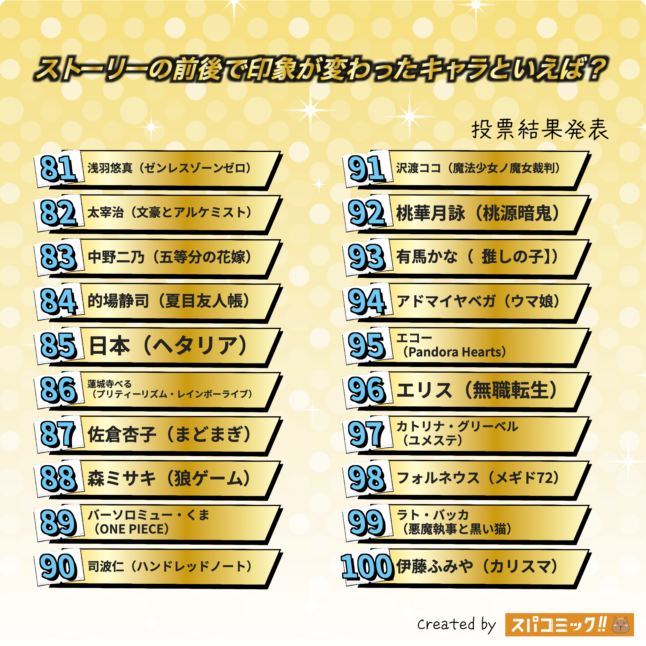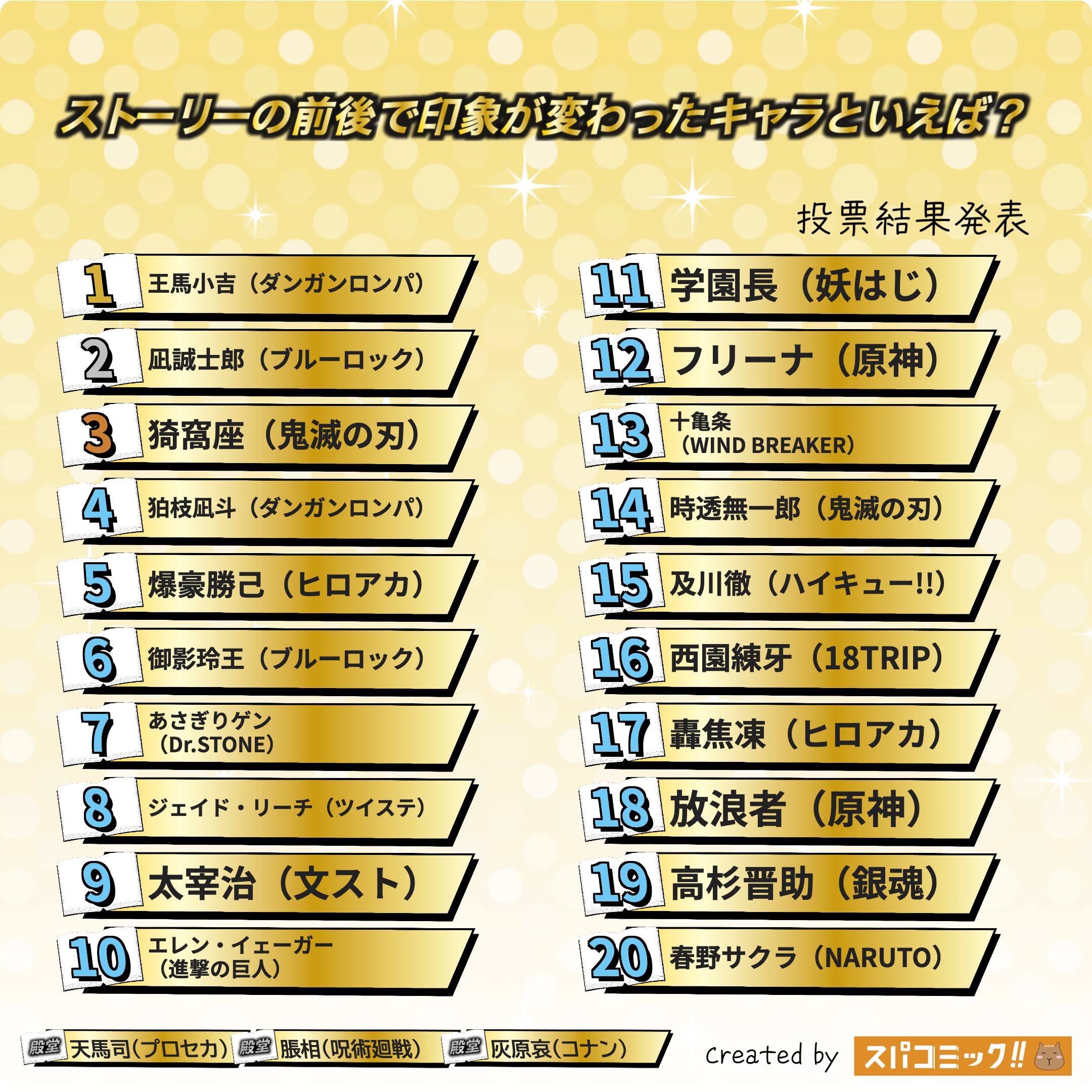 発表数: Best100+殿堂入り3キャラ