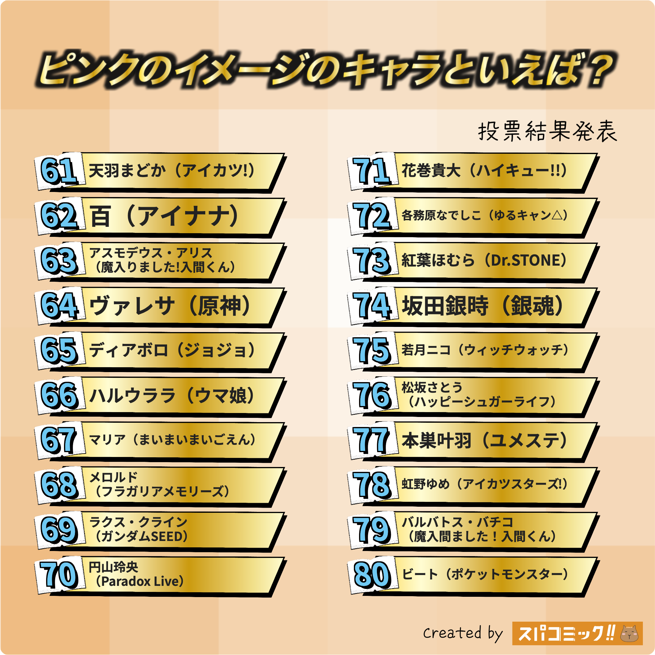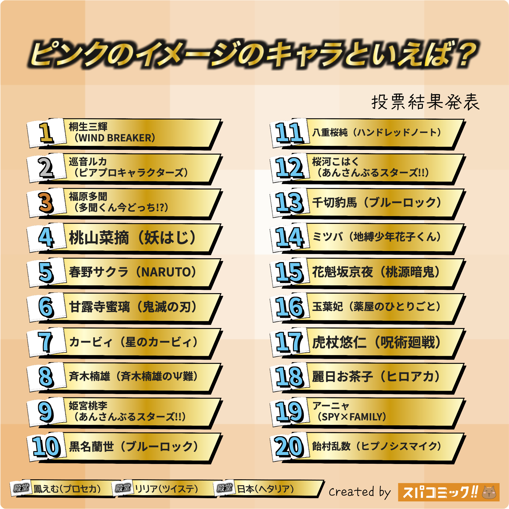発表数: Best100+殿堂入り3キャラ