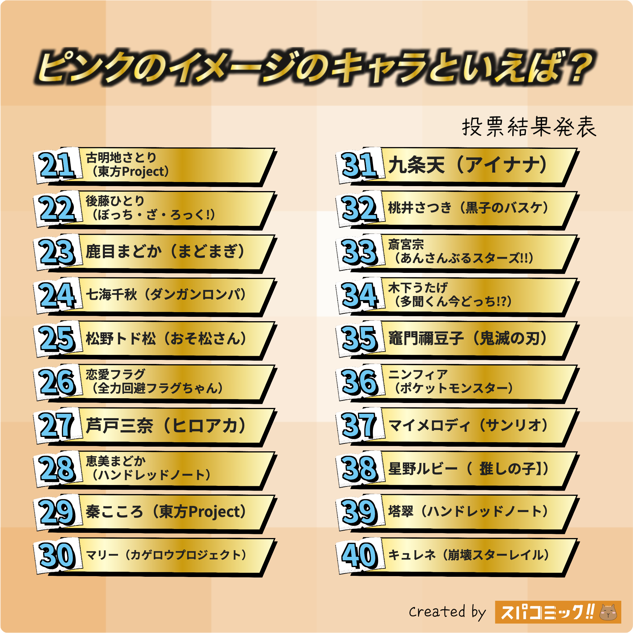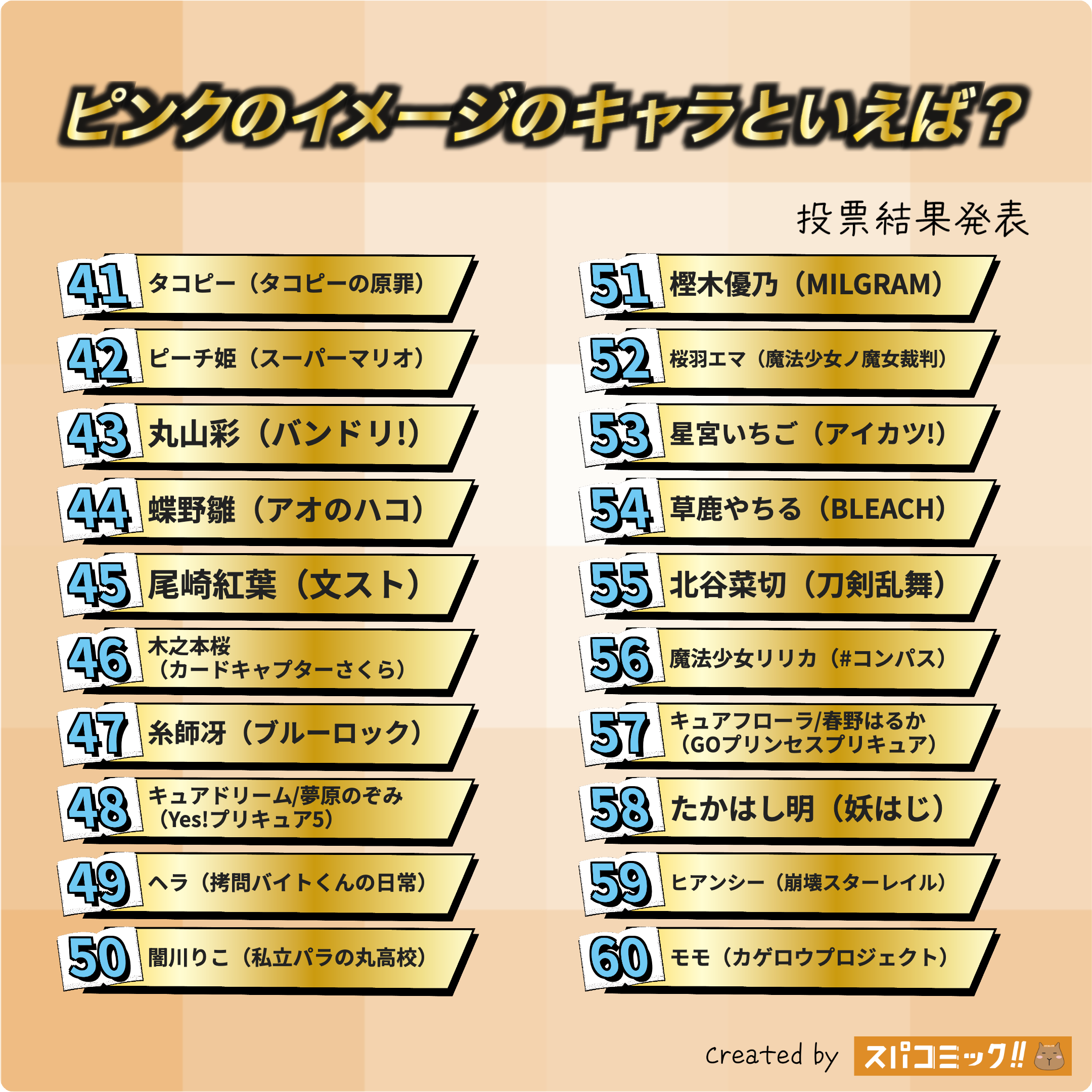 16票- やっぱりさくらちゃんはピンクがとっても可愛いですね!ピンキーさくらちゃん🌸