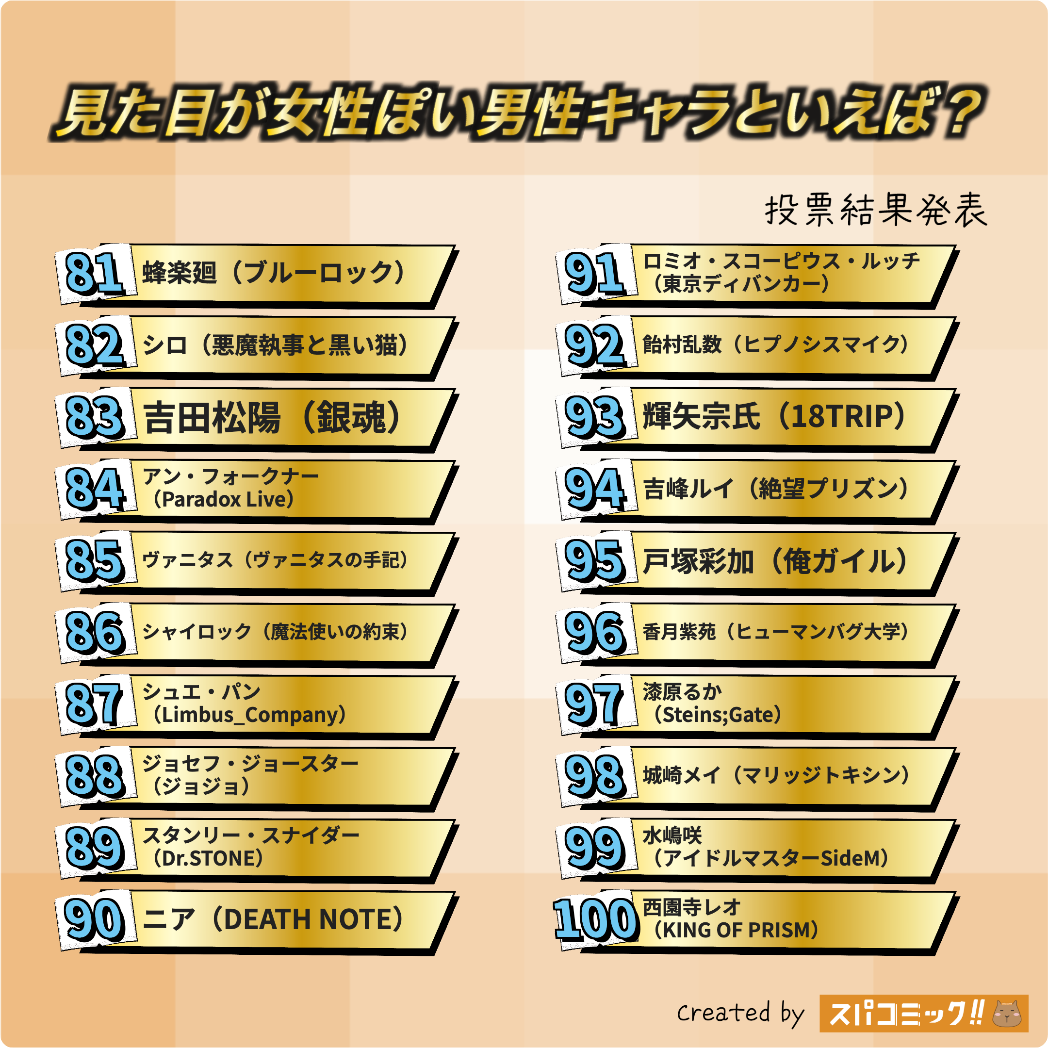 発表数: Best100+殿堂入り1キャラ