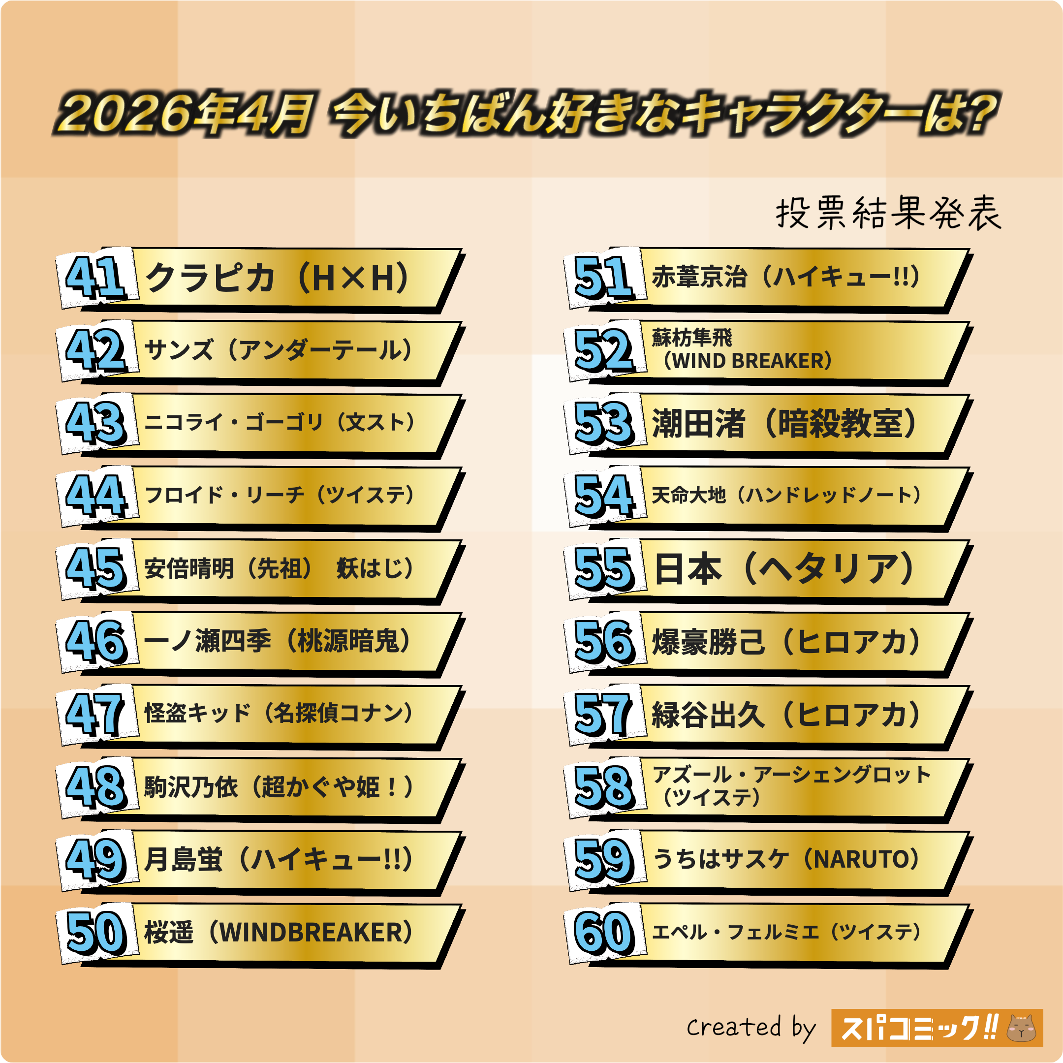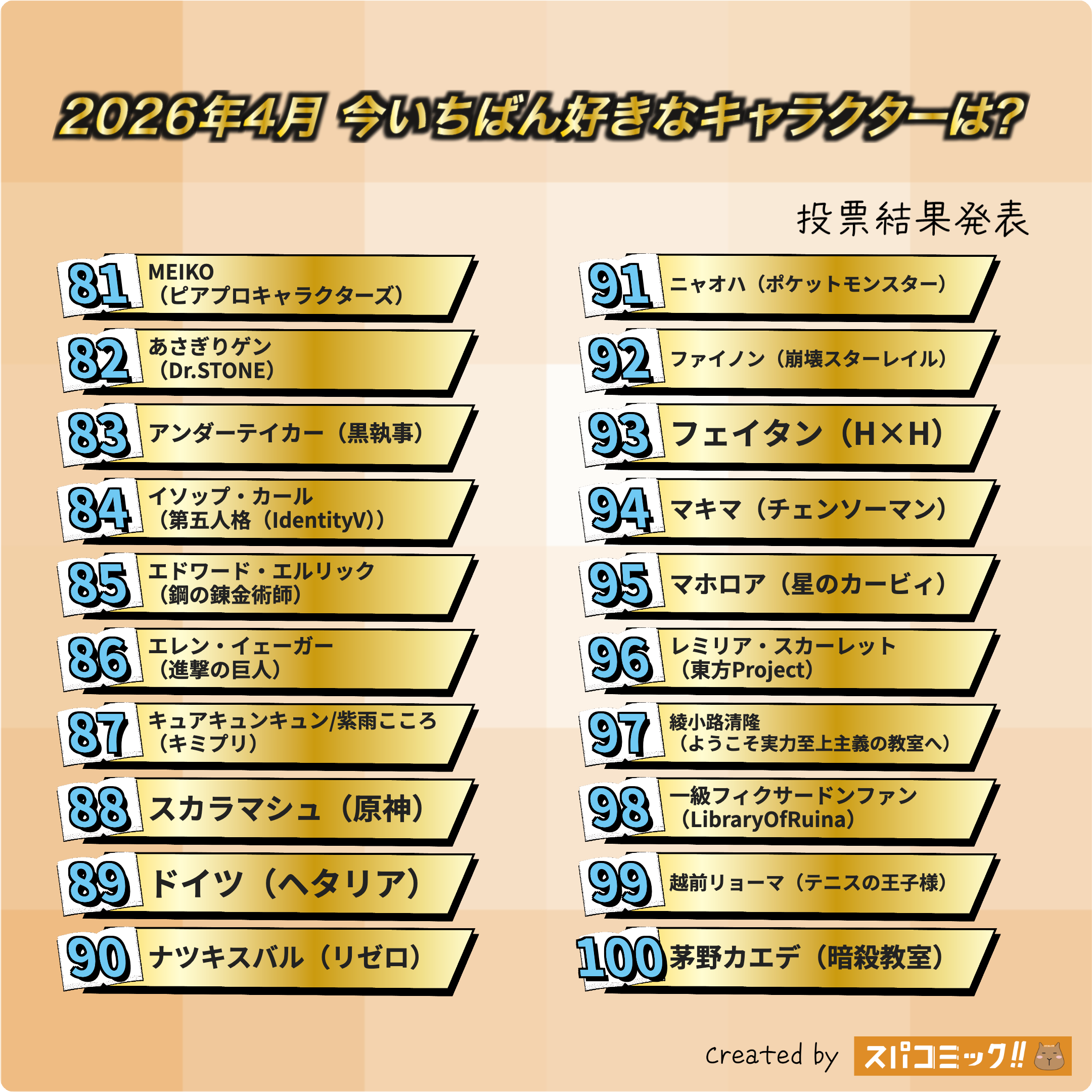 キャラクター選択肢の追加/投票を1票限定で行いました。