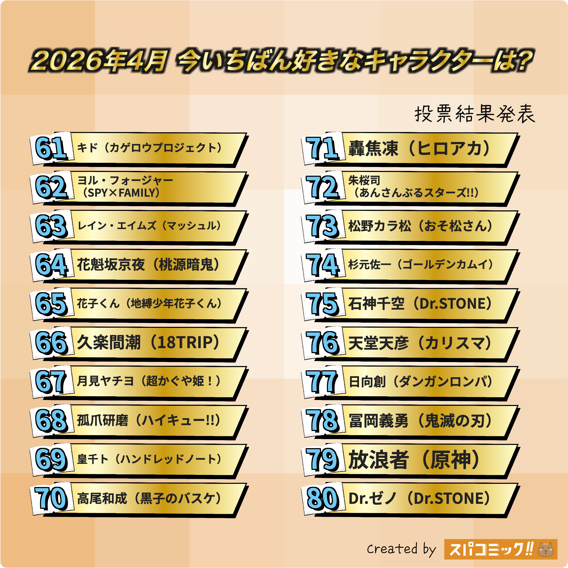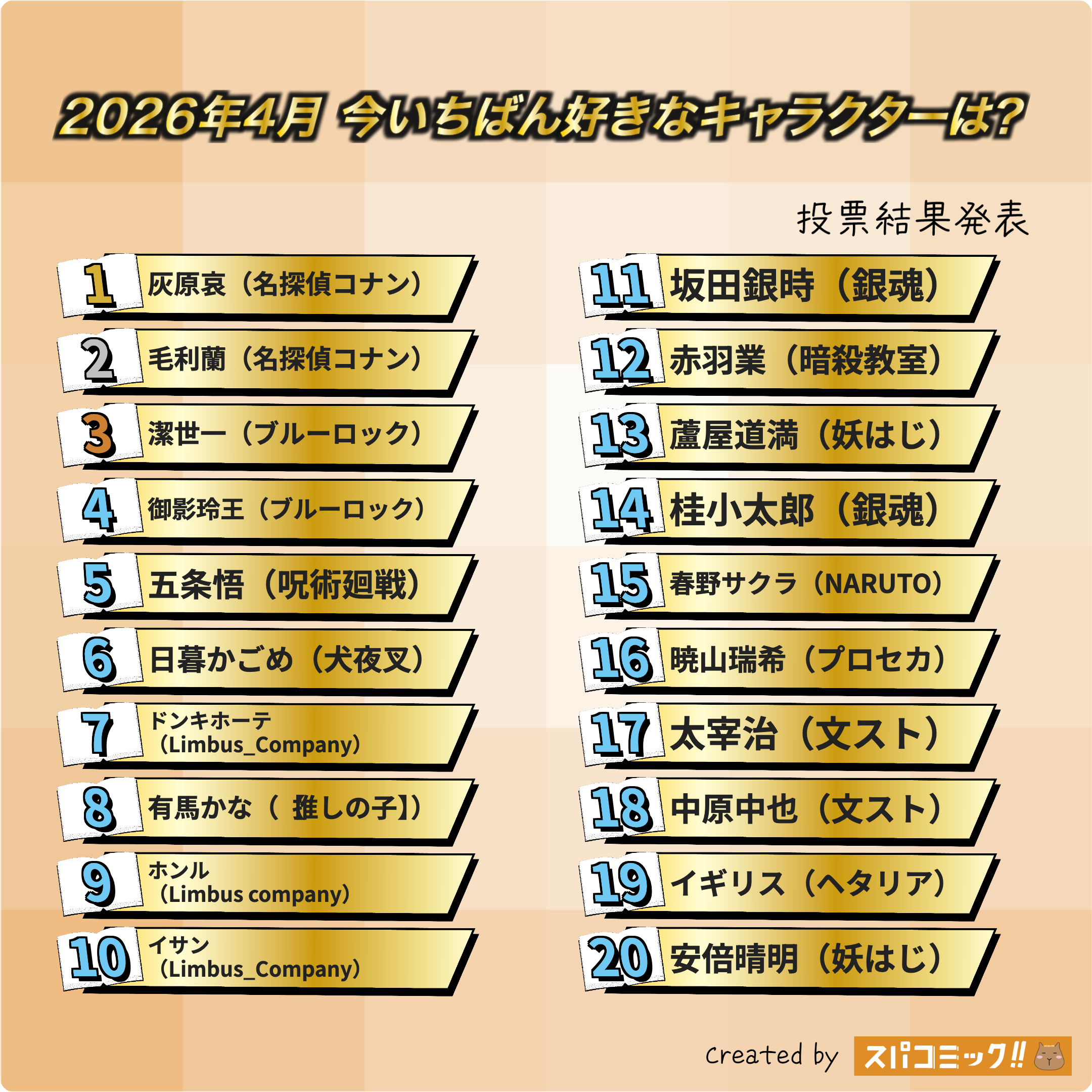 12票- 色んな作品を見たけれど銀さん程好きになった人はいません。辛い過去を持ちながらも自分の守りたいものを自己犠牲があったとしても守る普段はちゃらんぽらんに見えながらも1番カッコイイ主人公